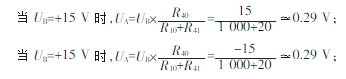 當(dāng)Ug'≤0時,UA=-15V。由于二極管VD6的作用,U02=UUg'+0.7V,調(diào)節(jié)范圍為-9.7~+9.7V。
